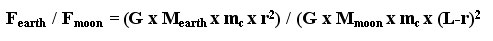 Полученото разстояние е голямо и е необходимо да се провери, коя гравитационна сила доминира на това място. Имайки предвид, че разстоянието между Земята и Луната е приблизително L= 384 000 km и ако с Fearth и Fmoon означим гравитационните сили, с които действат върху кораба, съответно Земята и Луната, то получаваме следното отношение: