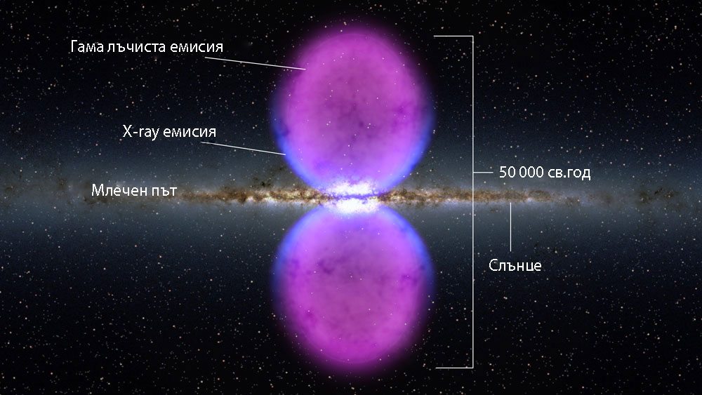 "Това, което виждаме са две емисии на гама лъчи във формата на балони, които се простират на 25 000 светлинни години, северно и южно от галактическия център. Ние все още не сме напълно наясно какво ги създава и каква е тяхната природа."казва Дък Финкбайнър – астроном от астрофизическия център Харвард – Смитсън, който пръв разпозна обектите. Тази структура се разпростира на повече от половината на от видимото небе, от съзвездието Дева до Жираф и може би е на няколко милиона години.