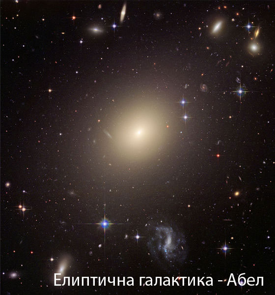 Те са с по-малко светлинно излъчване и имат формата на елипси. Обозначават се с буквата Е, последвани от индекс n, който показва сплеснатостта им. Индекса може да бъде от 0 до 7 и е равен на 10 пъти ексцентрицитета на елипсата, описваща най-добре формата на галактиката в първо приближение. Елиптичността се увеличава от ляво на дясно на диаграмата на Хъбъл. Така галактика от тип Е0 има форма на диск (най-вляво), а от тип Е7 - силно сплесната елипса (най-вдясно).